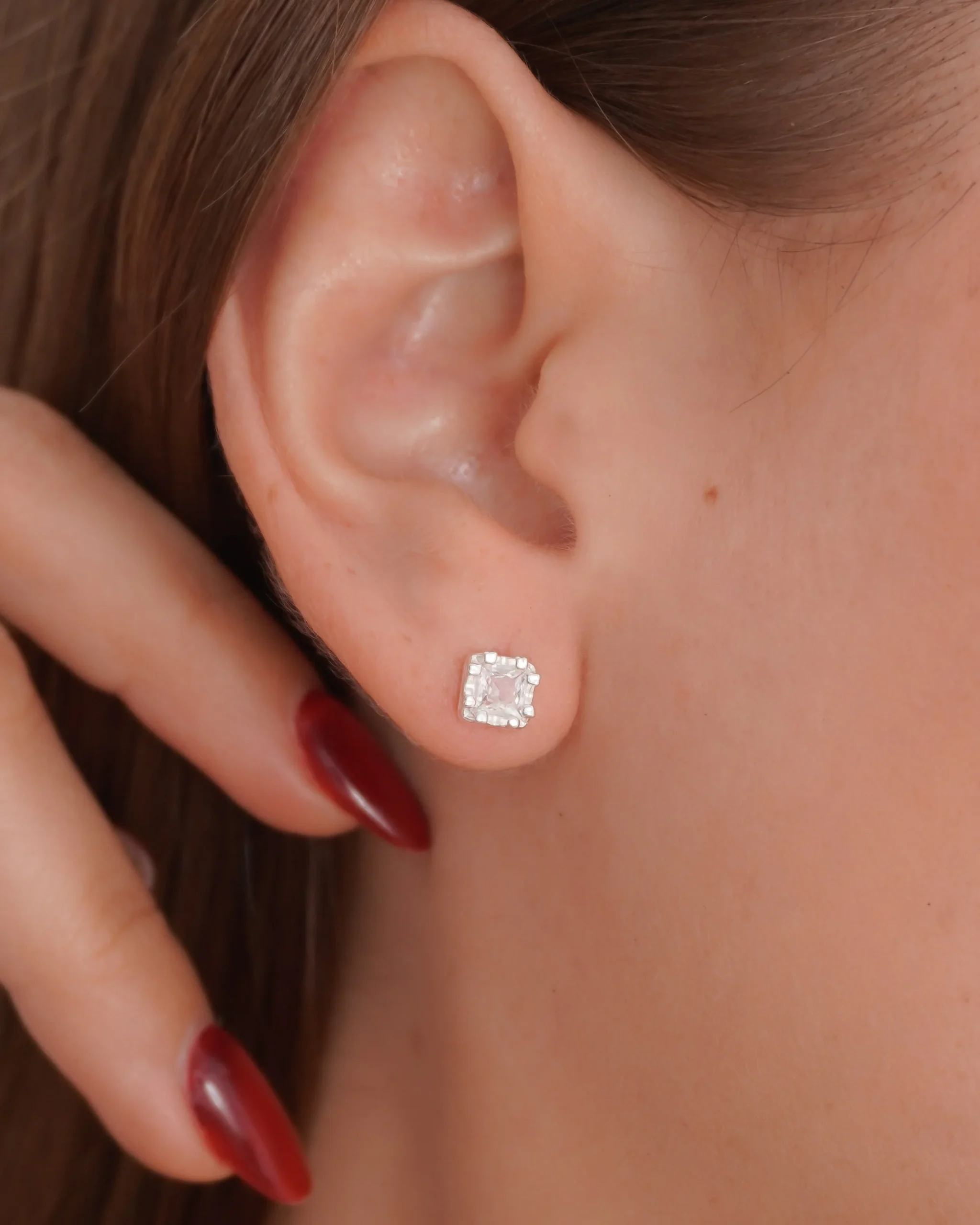 La plata S925, conocida por su brillo duradero y resistencia, asegura que estos aretes no solo sean visualmente atractivos, sino también cómodos y duraderos. Con un tamaño de 5MM, el diseño de caja corona ofrece un equilibrio perfecto entre minimalismo y distinción, haciendo que destaques con gracia y estilo en cualquier evento.