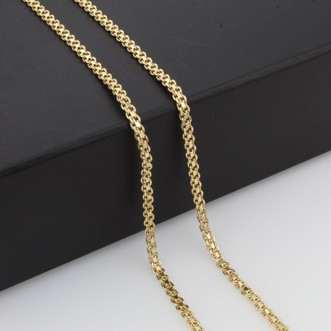 La cadena presenta un tejido chino meticulosamente elaborado, resaltando cada detalle con precisión artesanal. Su diseño impecable garantiza que pueda ser usada tanto para ocasiones formales como casuales, aportando versatilidad a tu colección de accesorios. Además de su belleza, su acabado resistente asegura que el brillo y la calidad se mantengan intactos con el paso del tiempo.