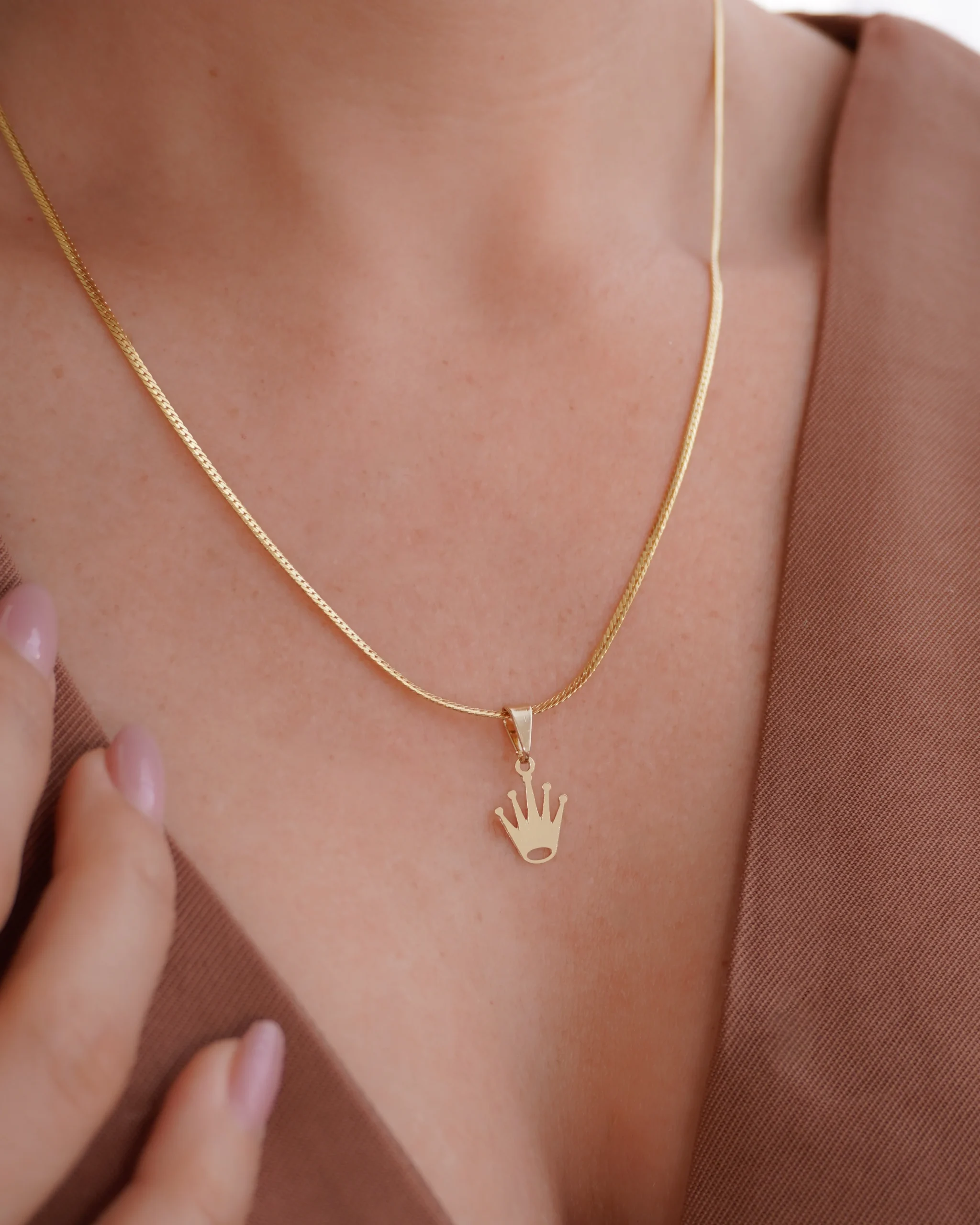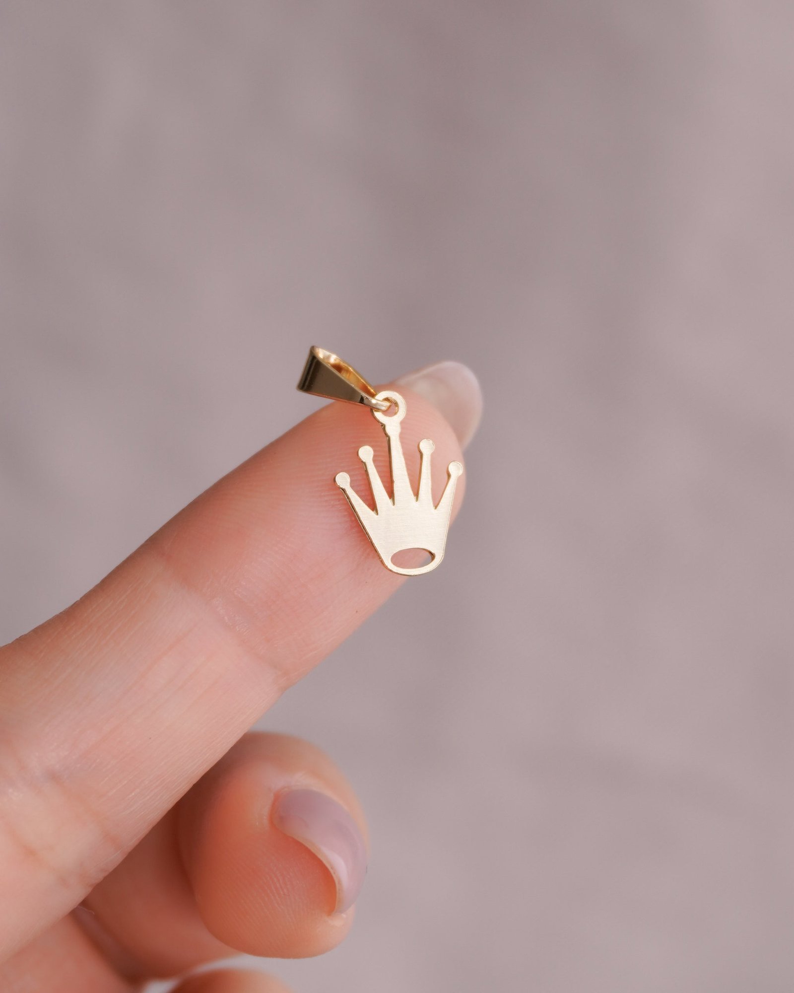 Hecho con atención impecable al detalle, este dije presenta una forma inspirada en la emblemática corona de Rolex, mundialmente conocida como símbolo de prestigio y éxito. Su acabado minucioso y materiales de alta calidad garantizan una durabilidad excepcional que complementa su atractivo visual. Ya sea que lo integres a un collar o lo luzcas como detalle individual, esta pieza tiene el poder de transformar cualquier conjunto en una declaración de estilo.