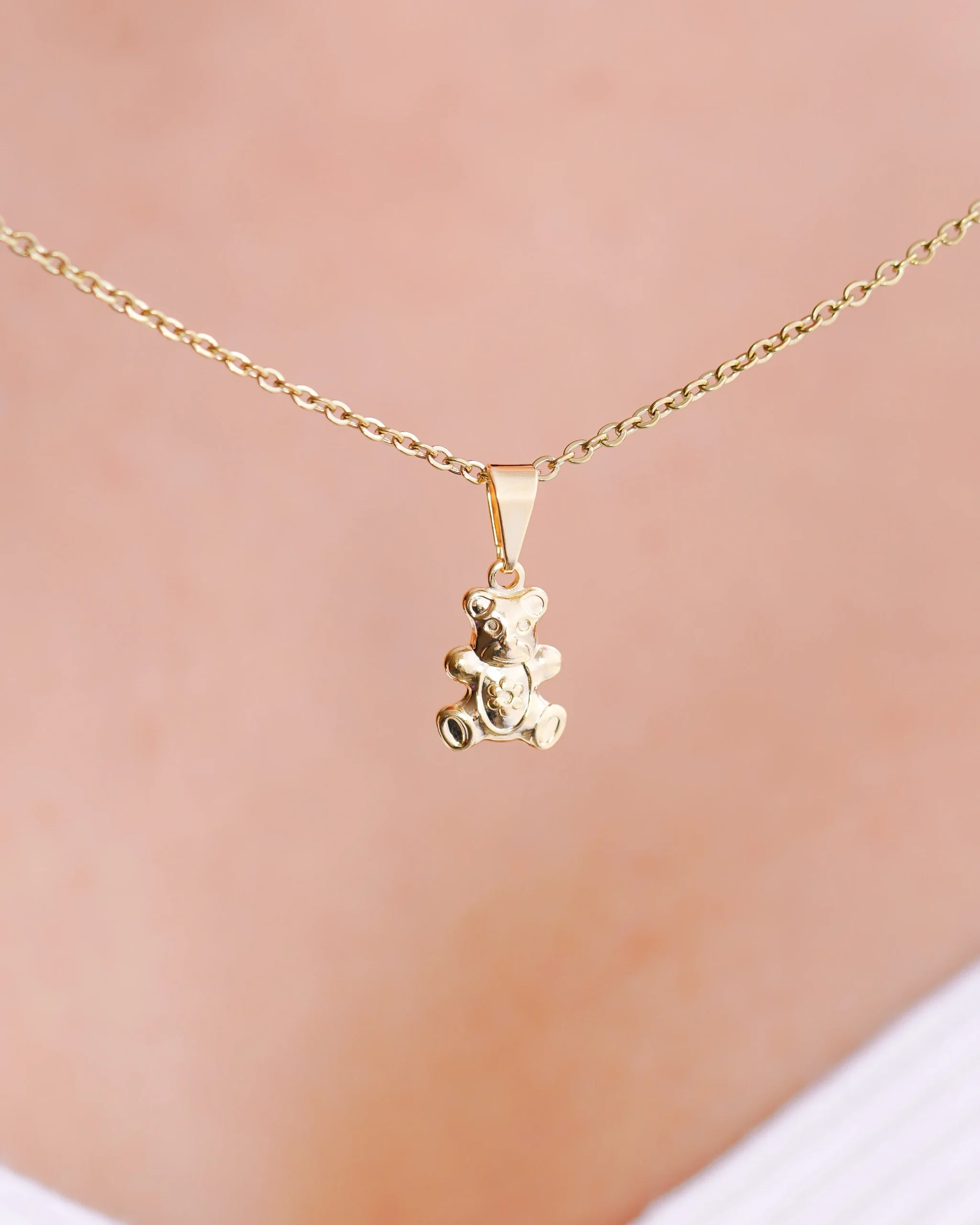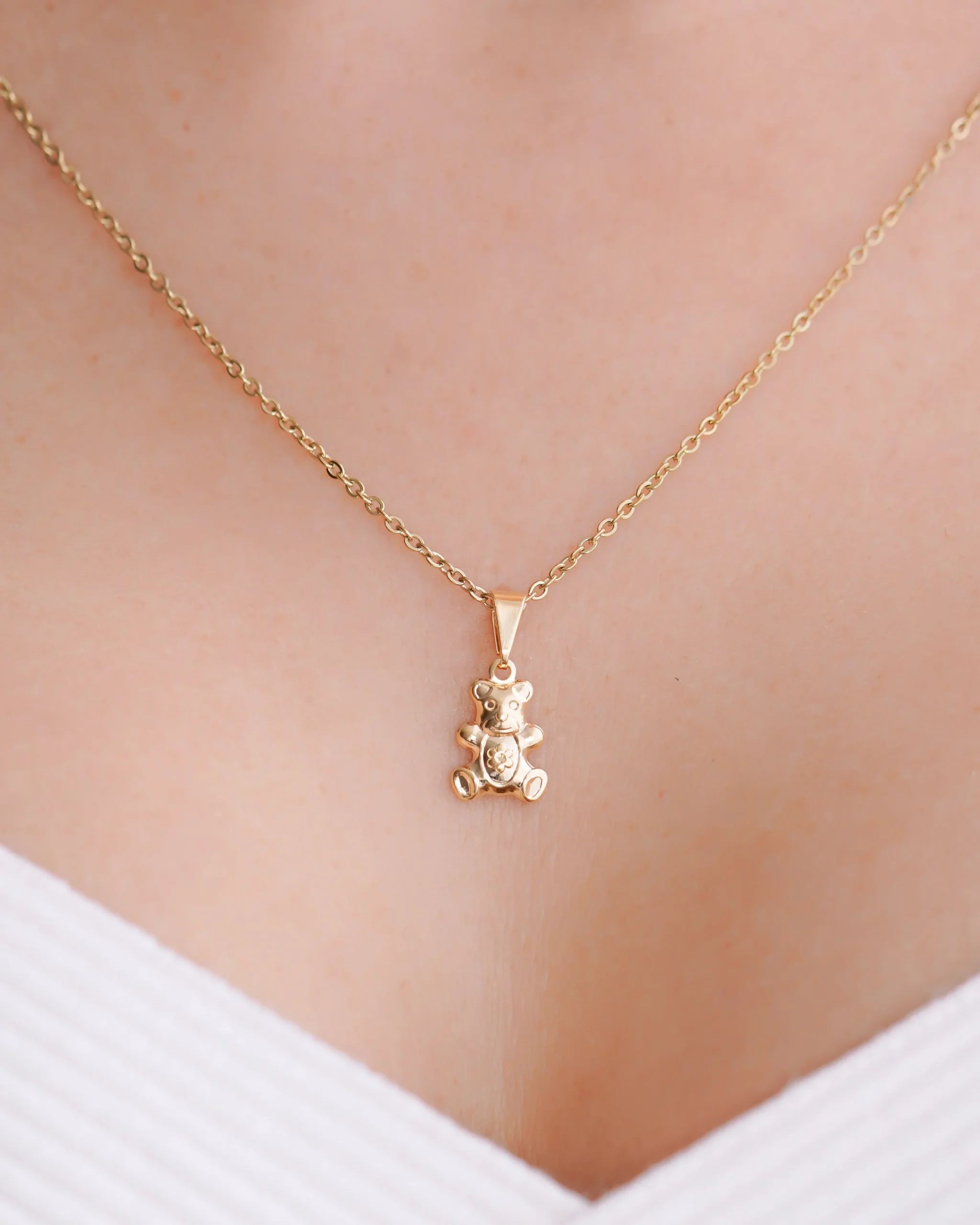 Apostando por la exclusividad, el DIJE OSITO TIERNO PURE está hecho con oro laminado de 18k, ofreciendo una fórmula que equilibra belleza y resistencia. Este material no solo aporta un brillo duradero, sino que también garantiza que el accesorio mantenga su calidad con el paso del tiempo. Es una opción libre de preocupaciones para piel sensible, siendo seguro y cómodo de llevar.