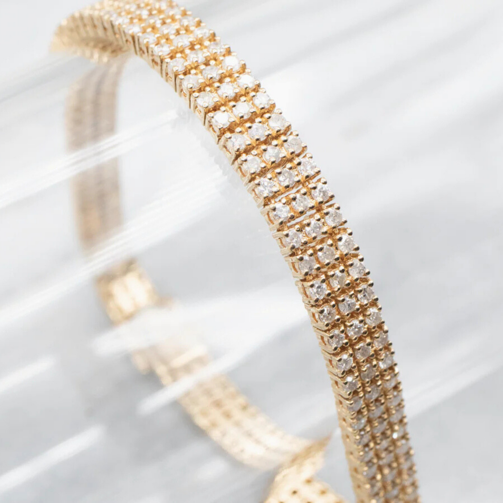 El diseño de la Pulsera Tennis Trio Línea Seguida está inspirado en los gustos exquisitos de la realeza, haciendo que quien la use se sienta especial y distinguida. Su construcción con materiales duraderos y brillantes garantiza que mantenga su belleza a través del tiempo. Además, el formato de líneas seguidas aporta una apariencia moderna mientras conserva un toque clásico que nunca pasará de moda.